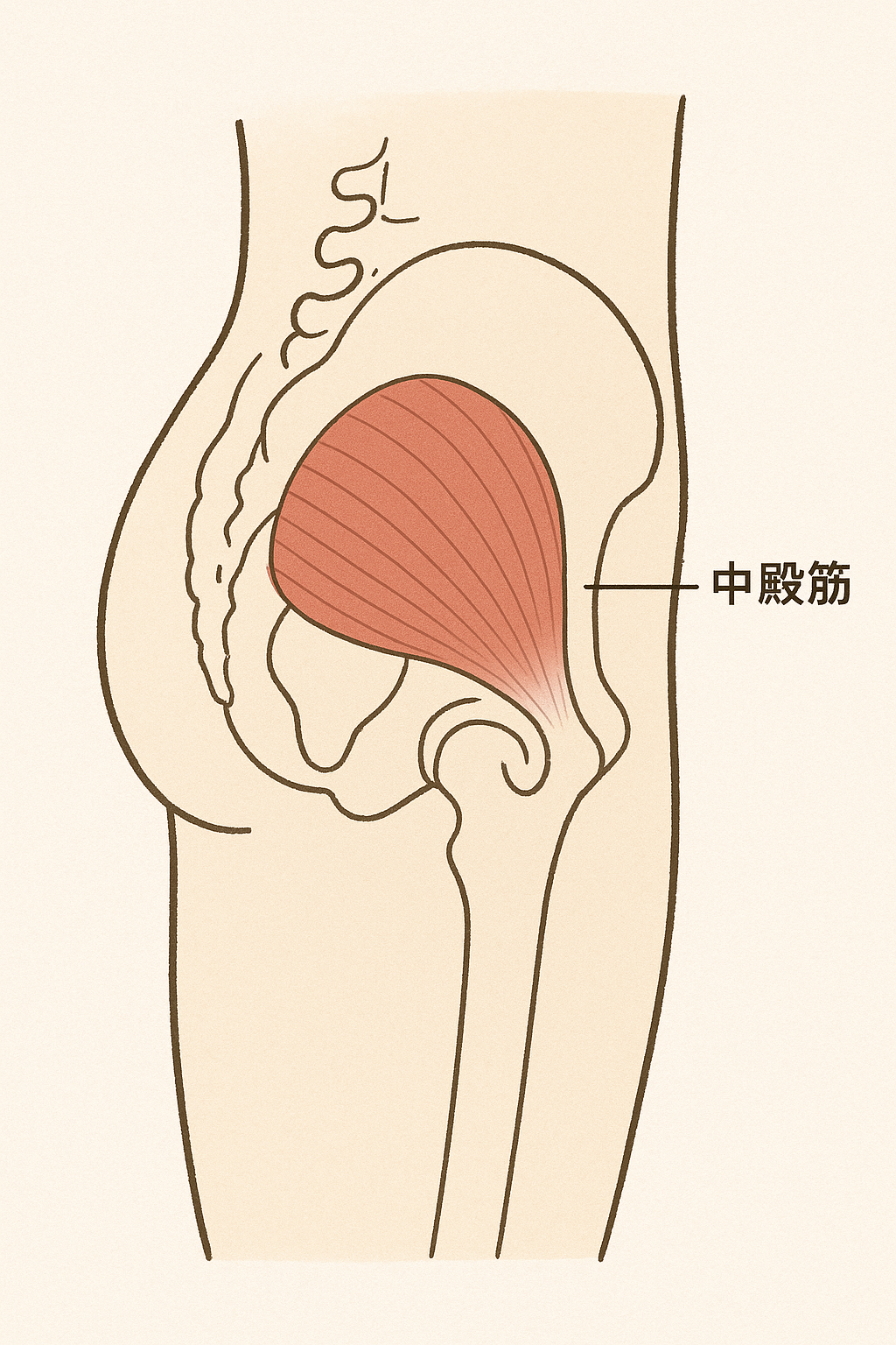 中殿筋や小殿筋などの股関節外転筋が弱いと、片足で体を支えるときに骨盤が傾き