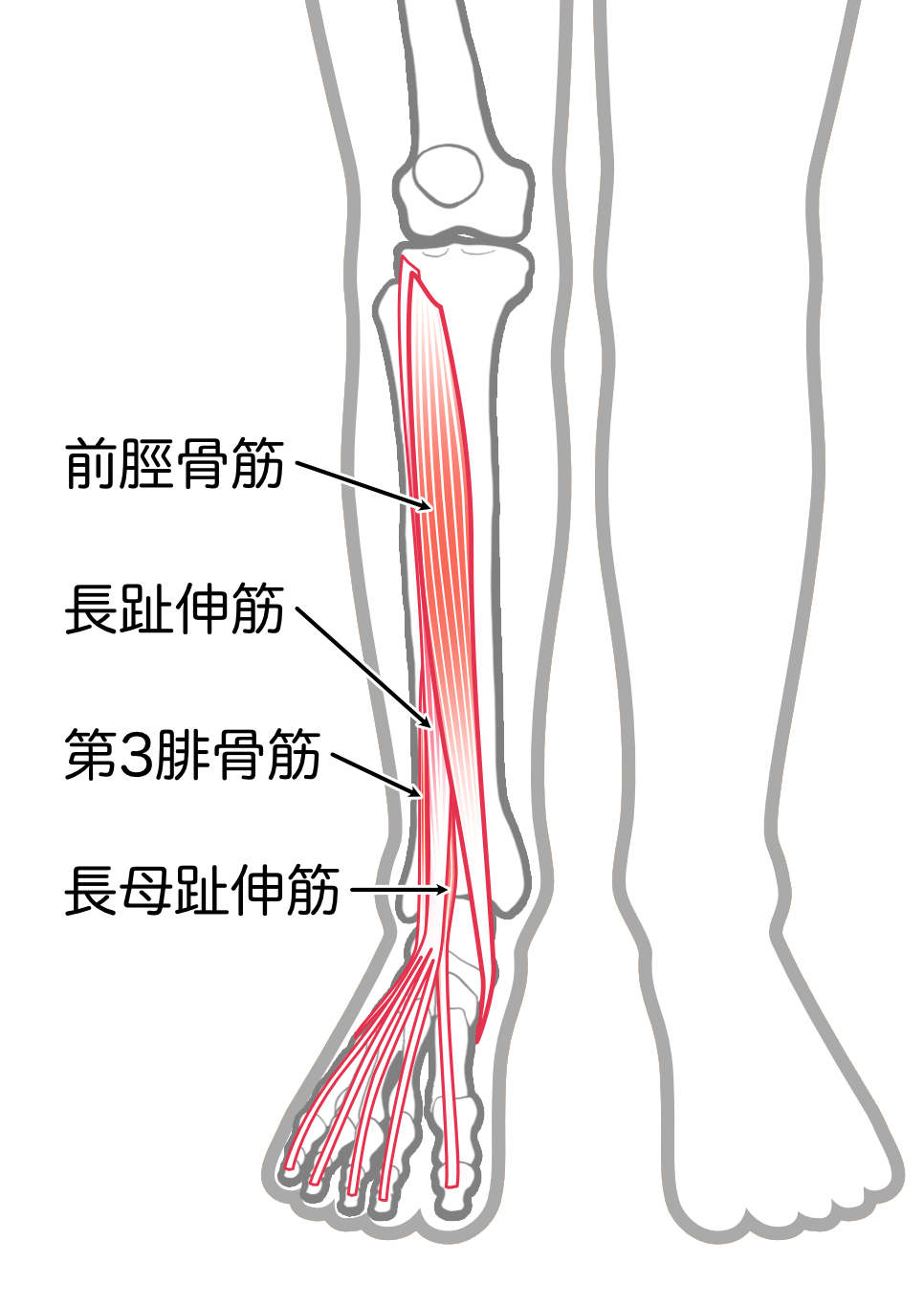 → 特に前脛骨筋(足首を上げる筋肉)が弱っていないかを調べる。
